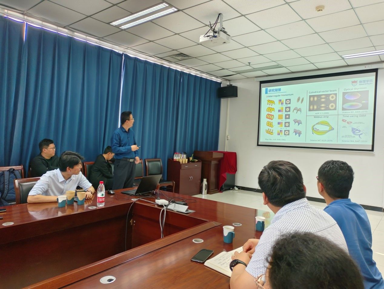 校新闻中心讯 5月6日,西安交通大学张沛教授应邀到我校在图书馆111会议室为我校师生作题为《光场横向模式调控及其在高维量子信息中的应用》的交流报告。报告会由物理工程学院副院长王辉教授主持。