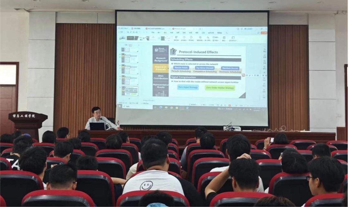 王子栋教授着眼于网络化控制系统区别于传统控制的问题与挑战,分析了通信网络在信号传输过程中的丢包、传输延迟、信道衰减、饱和等现象给控制系统造成的影响,阐述了考虑网络传输协议的控制系统设计与分析方法,介绍了团队最新研究成果和学术贡献,并讨论了未来研究方向。报告会后,王子栋教授与参会师生进行了深入交流。