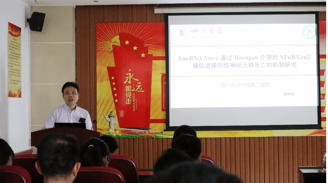 校新闻中心讯 近日,四川大学高林波教授应邀在正规博彩平台司法鉴定中心408会议室为我校师生作题为《LncRNA Ntoco 通过 Hnrnpab 介导的 NFκB/Lcn2 轴促进脑创伤神经元铁死亡的机制研究》的学术报告。报告会由基础医学与法医学院学术院长潘新民教授主持。