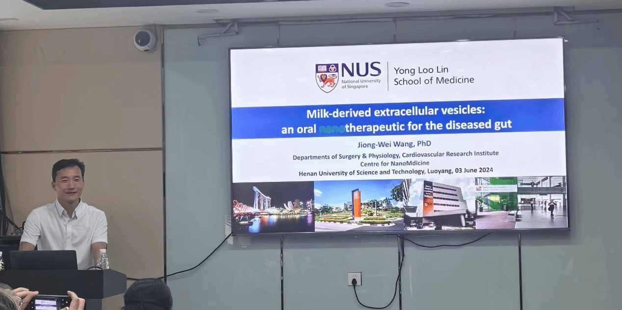 校新闻中心讯 近日,新加坡国立大学王炯伟教授应邀在基础医学与法医学院学术报告厅为我校师生作题为《Milk-derived extracellular vesicles:an oral therapeutic for the diseased gut》的学术报告,报告会由基础医学与法医学院副院长王萍教授主持。