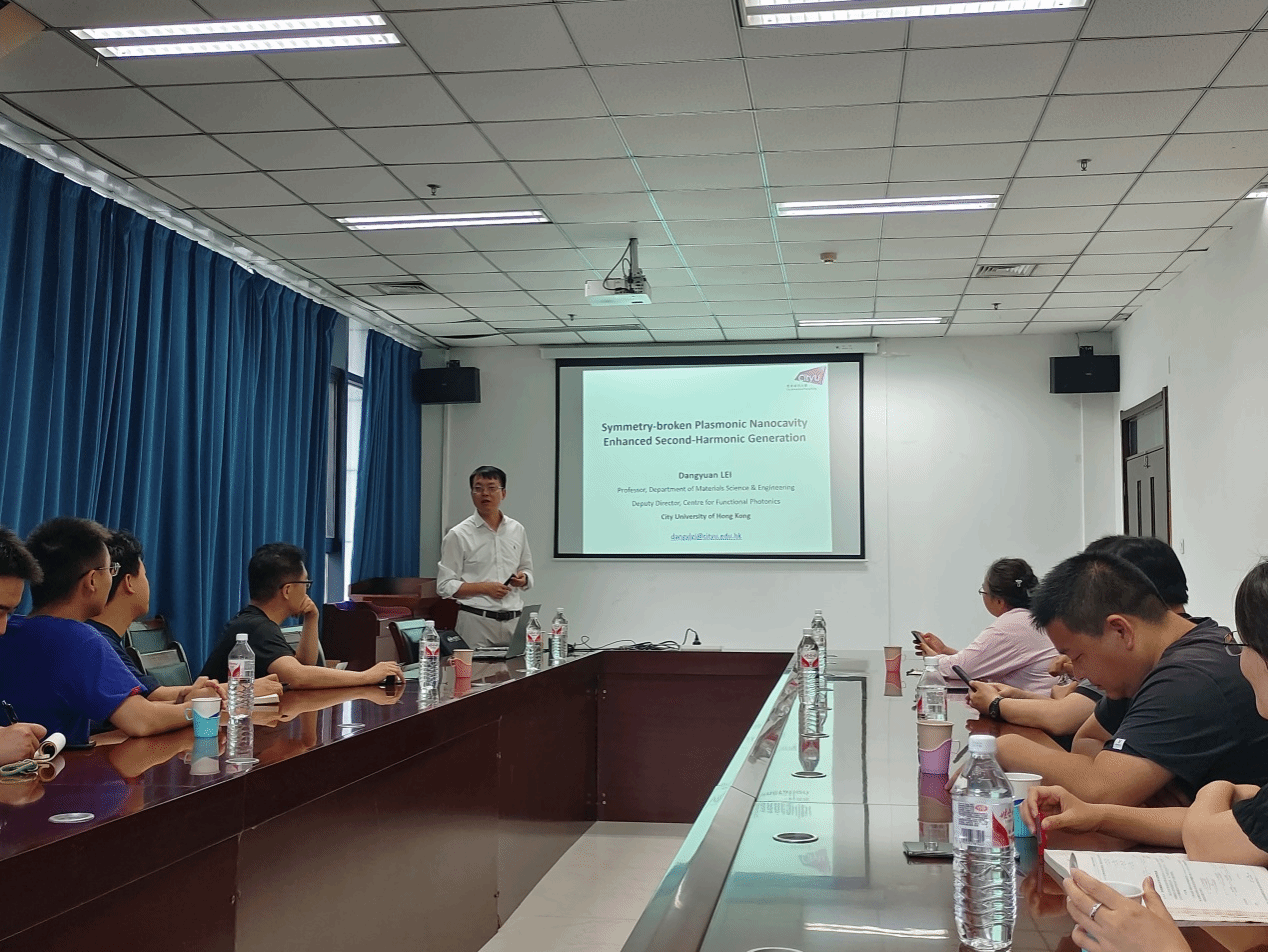 校新闻中心讯 7月8日,香港城市大学雷党愿教授应邀在图书馆111为我校师生作了题为《对称破缺等离激元纳腔增强二次谐波发射》的学术报告。报告会由物理工程学院李贺贺副教授主持。