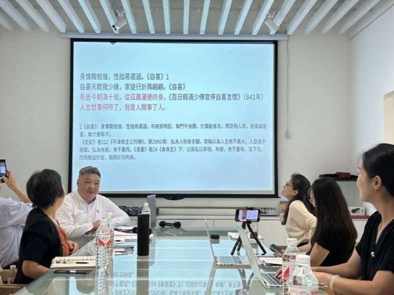 于宏教授通过深入浅出的语言,向参与者阐述了“自题诗”的界定、类别、意义。以白居易和陆游写过的众多自题诗为例,向我们深刻剖析了诗人的内心世界和情感波动,这些自咏、自嘲、自喜、自述、自笑、自勉、自责、自警等诗,打破了我们以往对诗人的刻板印象,带领我们看到了一个不同以往的诗人模样,也以小见大,从小视角窥探到当时时代背景下的社会风貌和人文精神。于宏教授的讲座内容丰富,风趣幽默,不仅讲解到位,还与在场的师生进行了互动,同学们都感到受益匪浅。通过于宏教授的讲座,同学们不仅领略到了“自题诗”作为中国传统文化瑰宝的独特魅力,同时也对中华民族的文化自信有了更深的体认。