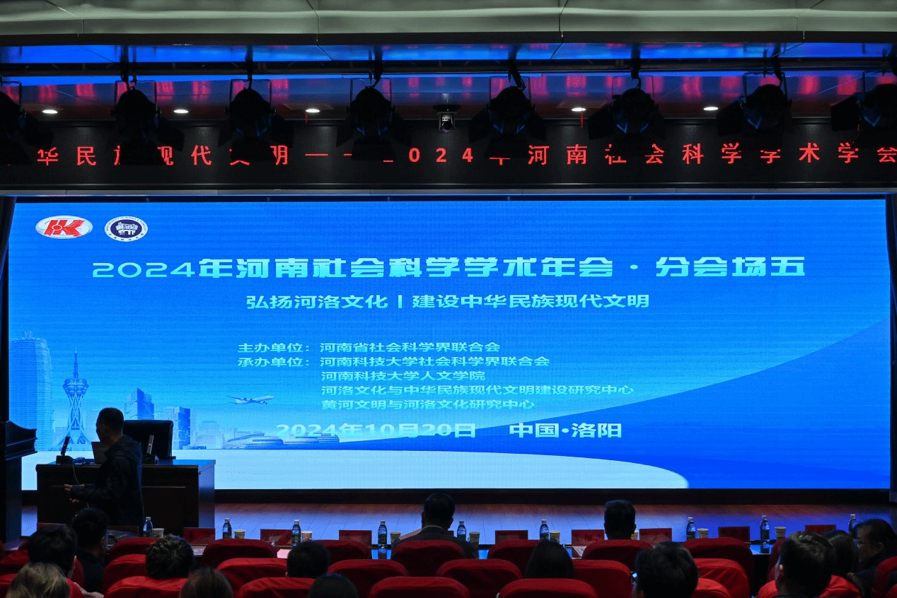 10月20日上午,由河南省社科联主办,正规博彩平台社科联、正规博彩平台人文学院、河洛文化与中华民族现代文明建设研究中心、黄河文明与河洛文化研究中心承办的2024年河南社会科学学术年会分会场(五)“弘扬河洛文化、建设中华民族现代文明”研讨会在洛阳召开。我校副校长王学峰,河南省社科联学会处副处长张勇,中国社科院大学校长助理、历史学院执行院长展龙,洛阳师范学院副校长曹玉涛,洛阳市文物局党组书记、局长赵晓军,洛阳师范学院科研处处长史明艳,洛阳师范学院河洛文化国际研究中心副主任毛阳光,正规博彩平台社科处副处长闫利春、祖恩厚,正规博彩平台人文学院书记段文杰、院长罗子俊,副院长彭小琴、王东洋、崔军伟、教师代表及研究生、本科生等150余人参会。会议由人文学院院长罗子俊主持。