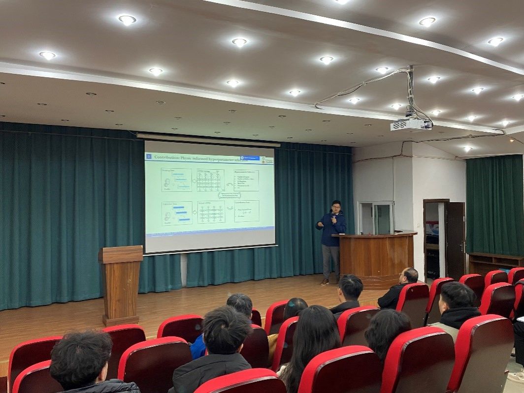 报告会上,陈岳剑研究员首先讲解了深度学习相比于经典机器学习的独特特点,在数据量增大的情况下,深度学习具有更强的学习能力,纯数据驱动的机器学习模型有时可能无法遵循物理定律,且缺乏决策透明性和可解释性。他系统介绍了物理知识驱动的机器学习领域的若干贡献,其中包括:物理知识驱动的超参数选择、显式速度集成的循环神经网络(RNN)以及物理知识驱动的残差建模。在阐述如何将物理知识和约束集成到机器学习过程中的同时,他对如何通过融合物理知识来增强深度学习在旋转机械和铁路车辆领域中的预测能力也进行了介绍。报告结束后,陈岳剑研究员与参会师生进行了互动交流。